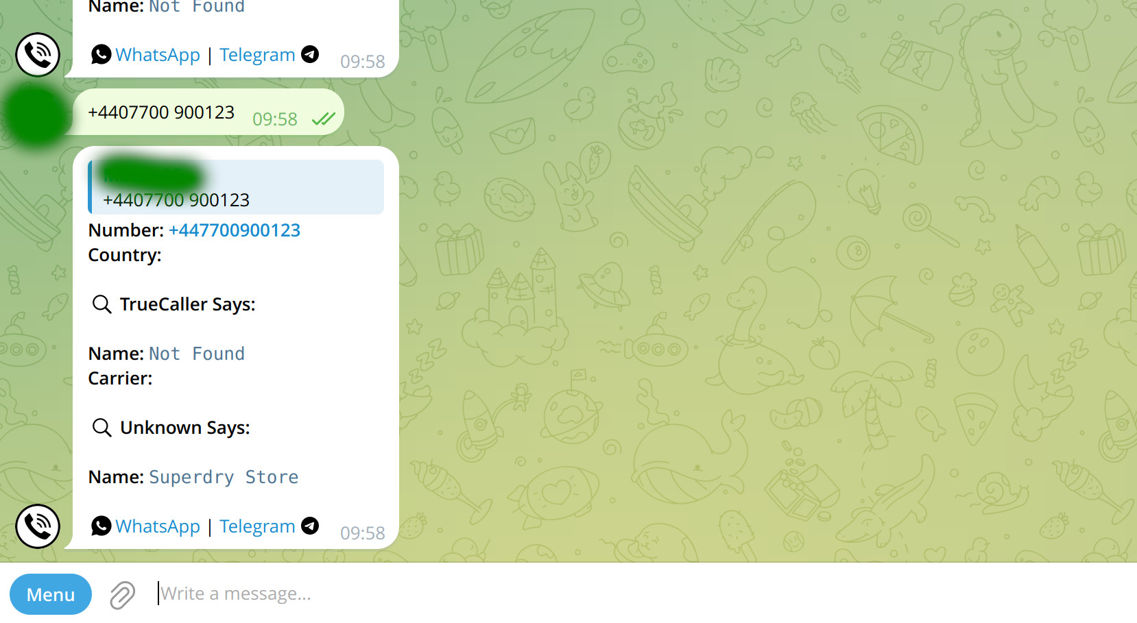 - Phone Number Recon: Converts phone numbers to Telegram User IDs and associated metadata.